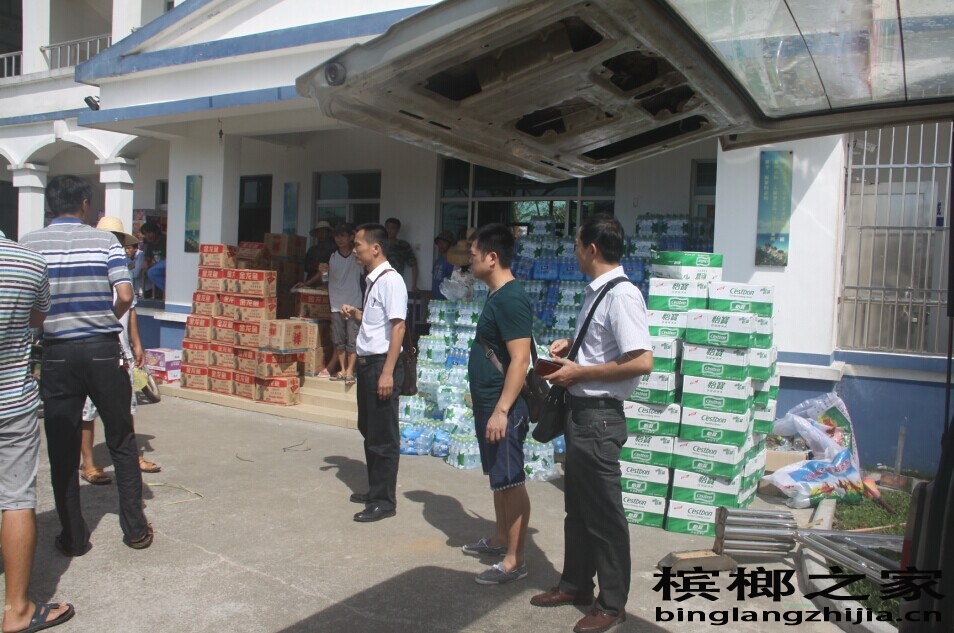 2014年7月22日在海南省槟榔协会领导的牵头下,海南省槟榔协会以及海南文昌冠瑜陨石文化有限公司共同筹集了发电机六台、三色防风布等救灾物资,到了文昌市锦山镇下溪村交于村民手中,以上是与锦山镇领导、灾民以及自愿者的合照!