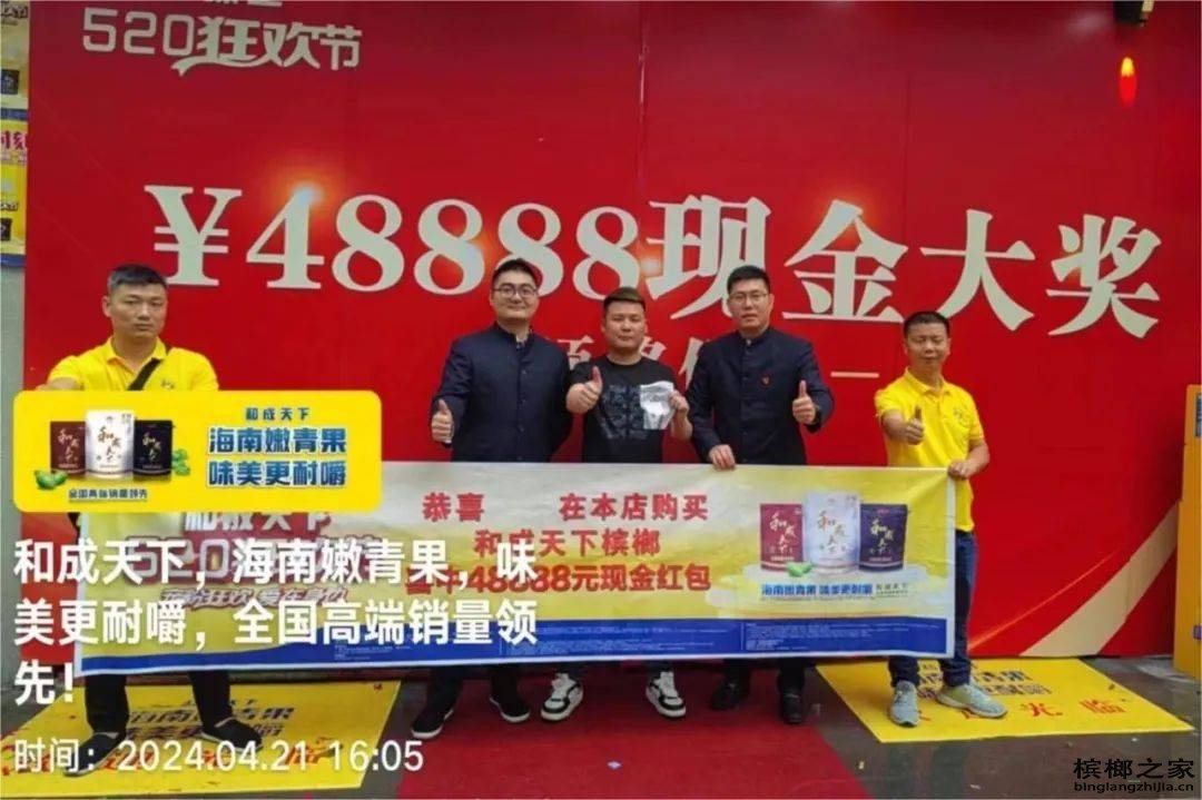 “吃了很多年和成天下,晚上准备买一包槟榔回家睡觉,没想到中了包100的和成天下,这包中的和成天下就开出了48888元现金大奖。真的很惊喜也很惊讶,和成天下是实实在在地给我们忠实用户送福利,朋友圈里好多人知道了都在问,都想买!”——来自湖南益阳的张先生